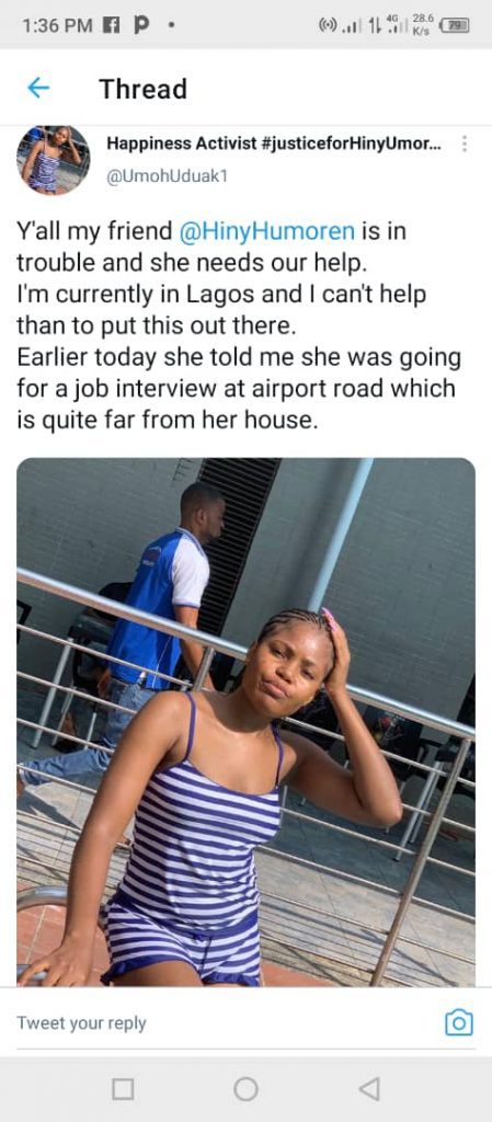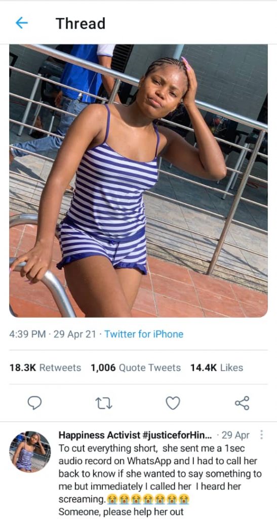 On the 29th of April 2021, Twitter user Umoh Uduak raised series of alarms in a tweet alerting the public that her friend might be in trouble.