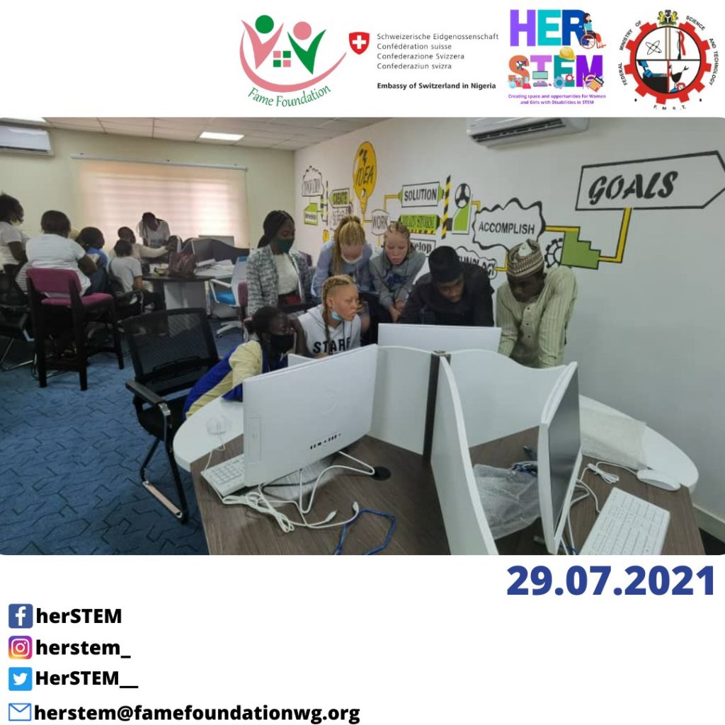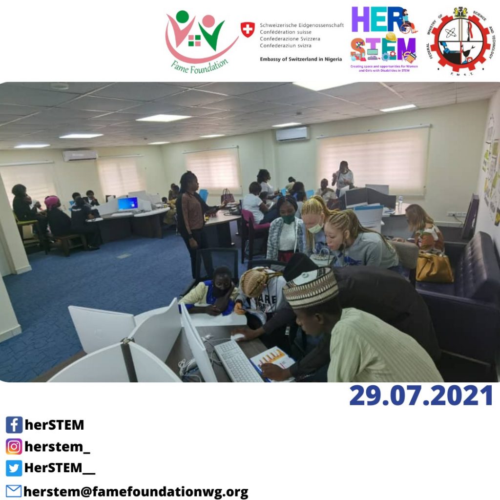 Ms. Aderonke Bello, the Executive Director FAME Foundation appreciated the Director in attendance and gave a brief introduction of the HerSTEM Initiative and the work currently going on for women and girls with disabilities. “I encouraged all the participants in attendance to ensure they make the most of this opportunity and learn from it and I myself is also excited to learn”, she said Following the meeting, a tour guide was assigned and he gave the participants a tour of the technological facilities, PCB lab and the robotics laboratory. The participants were also taught on how to design a robot, how to control a robot from a mobile device through a Bluetooth and many more.