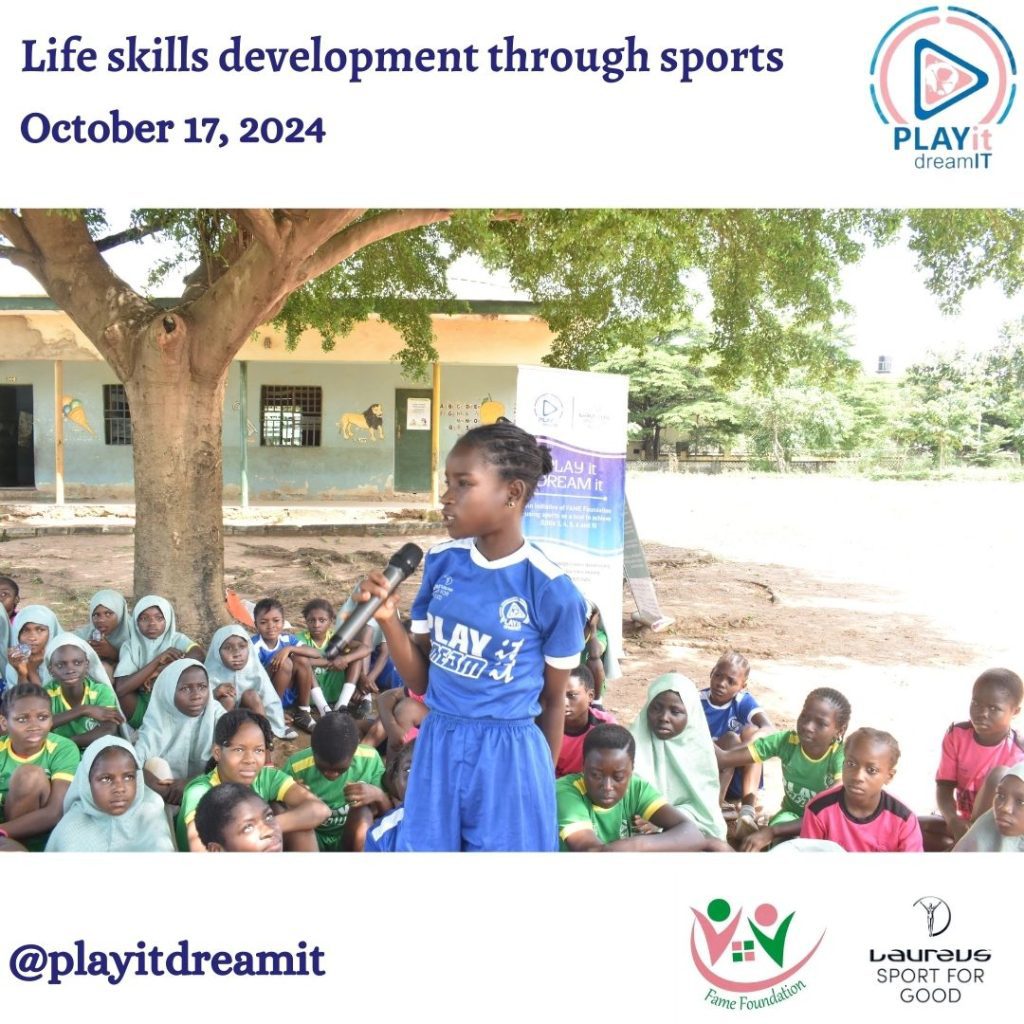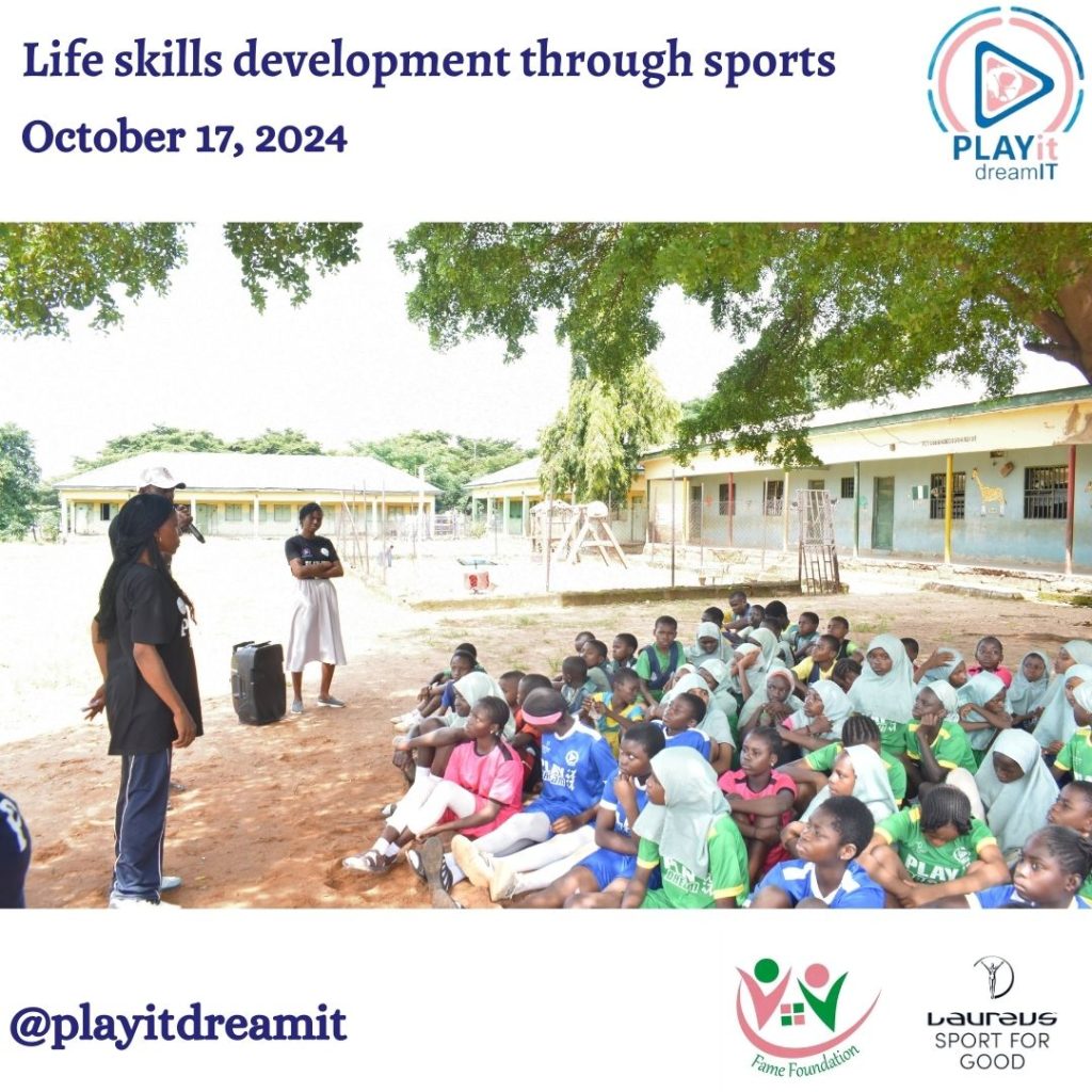 FAME Foundation, in partnership with Laureus Sport for Good, hosted its monthly Life Skills Development through Sport session as part of the PLAY it DREAM it initiative. The event took place on October 17, 2024, at LEA Primary School, Utako with 70 participants, including 50 girls and 20 boys who benefitted from the project.