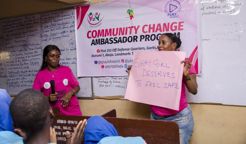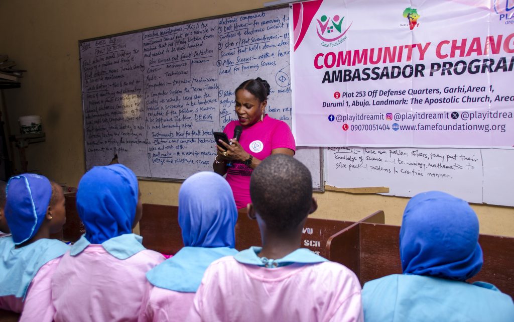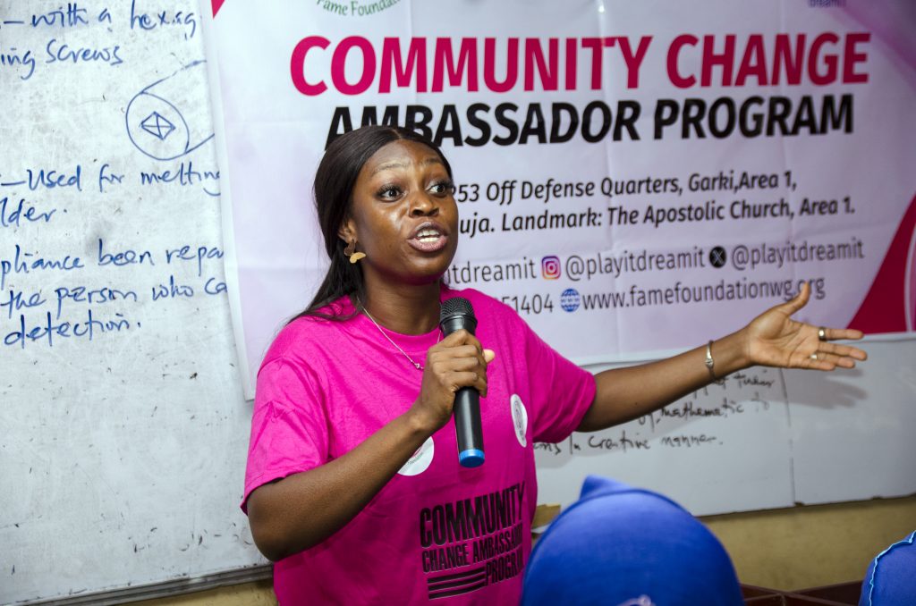 On November 27, 2024, FAME Foundation, with the support of Tackle Africa, organized Community Change Ambassadors Program (CCAP) at Igbo-Owu Junior Secondary School in Lagos. The event, held under the Play It Dream It initiative, aimed to empower 28 young girls by promoting girl-led community engagement. The program’s primary focus was to inspire these girls to take on leadership roles, enhance their communication skills, and become advocates for positive change within their communities.