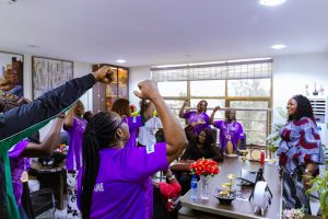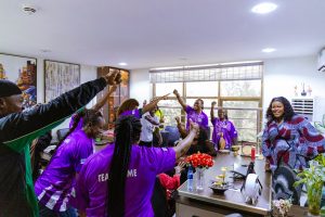 On March 9, 2026, members of the FAME Team paid a courtesy visit to the Executive Director of FAME Foundation, Arabinrin Aderonke Atoyebi, to present the trophy they won at the 9th FAME Foundation Women’s Day Football Tournament.