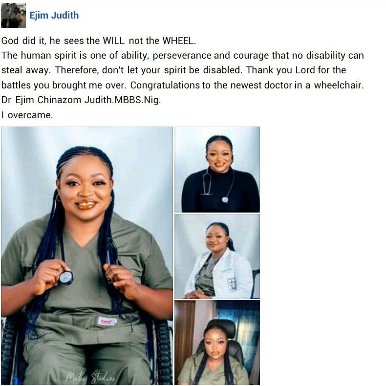 A physically challenged Nigerian lady, Dr. Ejim Chinazom Judith, has taken to Facebook to issue that she is now formally a medical doctor. Dr. Ejim studied Medication & Surgical operation on […]
