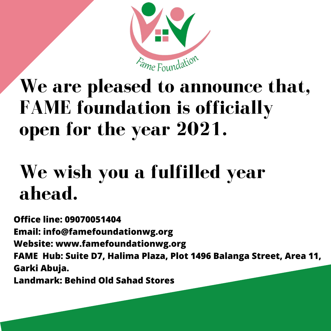 We are pleased to announce that FAME foundation is officially open for the year 2021. Thank you for an amazing 2020, let’s make 2021 better. To successfully move forward in […]