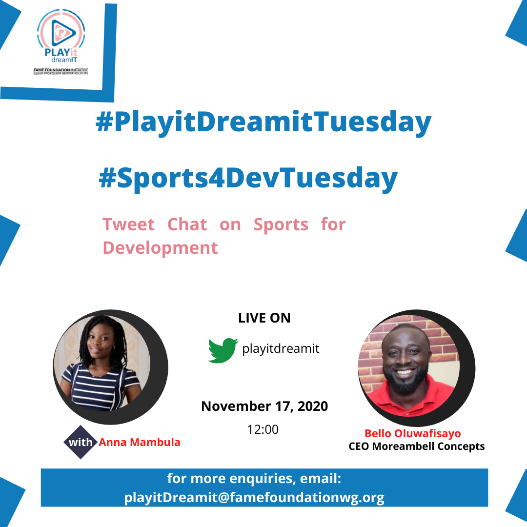 On this edition of #PlayitDreamitTuesday, 17 November, 2020. We have with us Mr. Bello Oluwafisayo, CEO Moreambell Concepts and an Ex. Basketball Player and we will be discussing, “using basketball […]