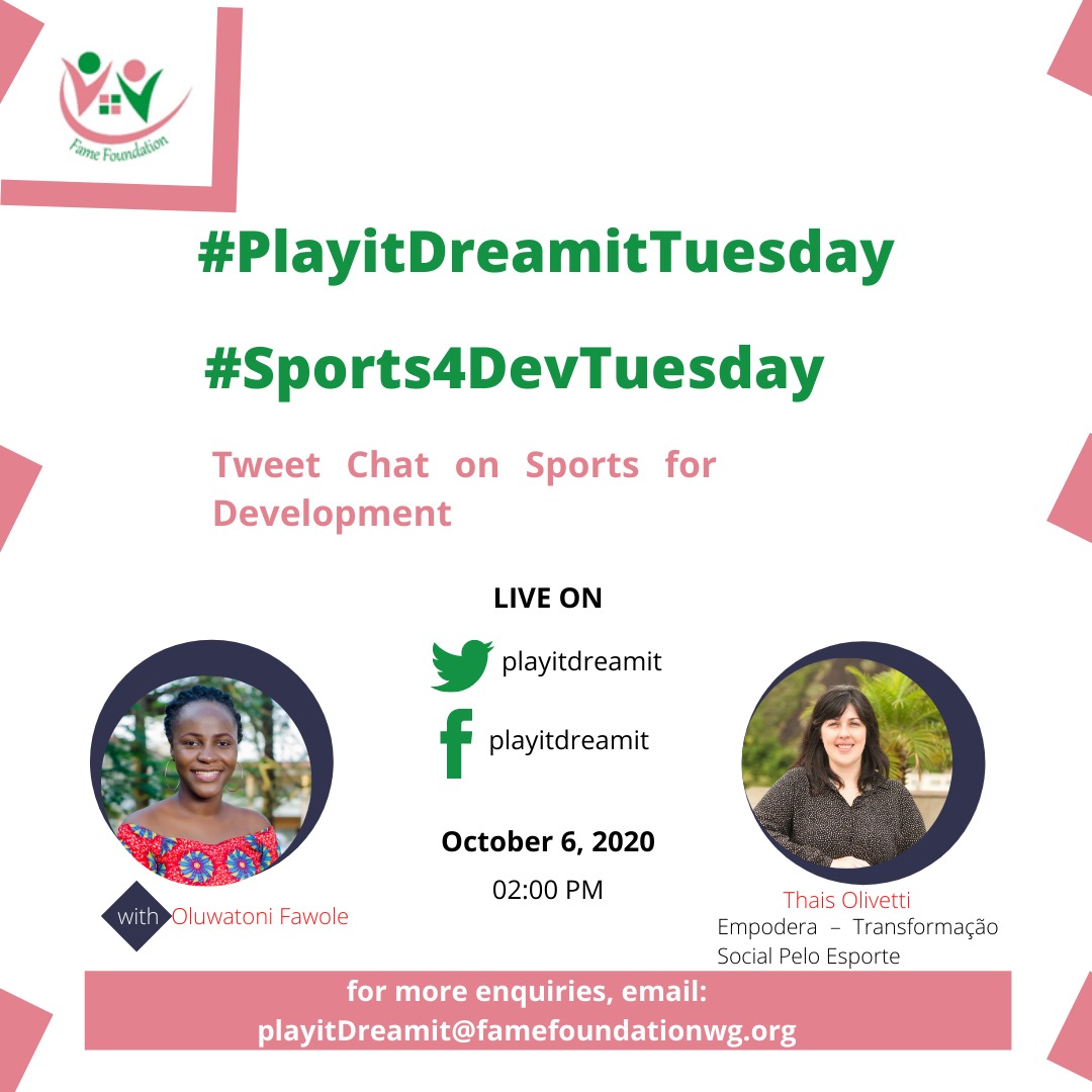 On this week’s edition of PlayitDreamitTuesday, we had Miss. Folake Oyebade, the Lead Volunteer at FAME Foundation join us and we discussed “Volunteering- A tool for change”. QUESTIONS OF THE […]
